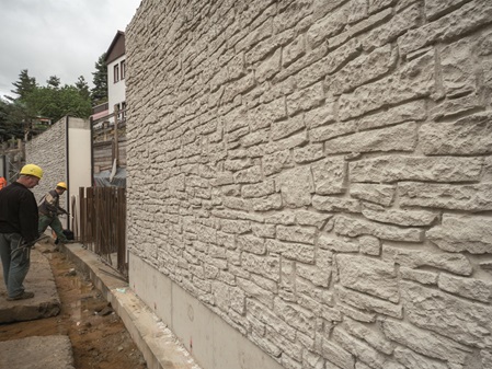 | Projekt | Stützwände mit NOEplast Mauerwerk-Struktur Murus Romanus |